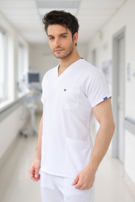 Este soluția ideală pentru turele din zilele calduroase, când vrei să te simți răcoros, uscat și profesionist toată ziua. Se asortează perfect cu orice pantalon medical (inclusiv modelele Flexcool, Jogger sau clasice).