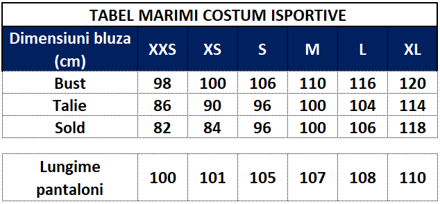 • Modelul Isportive este un set format din 2 piese, bluza si pantalon, ambele din aceeasi tesatura si culoare.